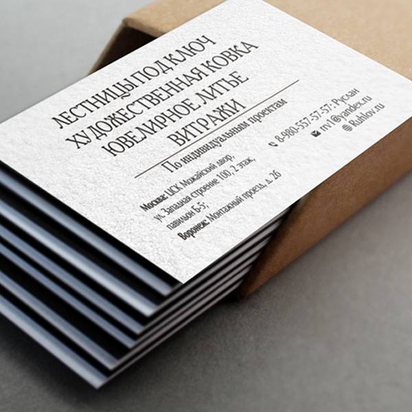 Визитки, выполненные УФ-печатью, имеют выпуклое изображение, глянцевый блеск, и могут быть напечатаны на любых бумагах, в том числе темных. Срок изготовления таких визиток - от 5 рабочих дней.