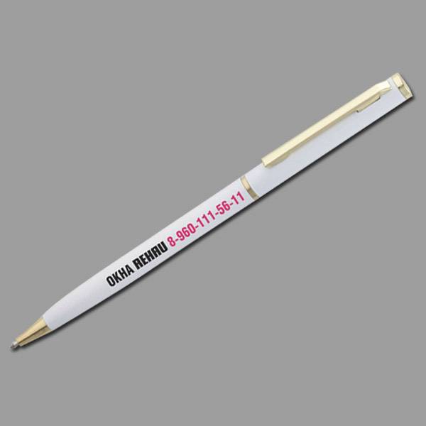 Печать на ручках с цветным корпусом осуществляется с предварительным нанесением белой подложки под изображение, поэтому стоимость печати дороже, чем на ручках с белым корпусом..